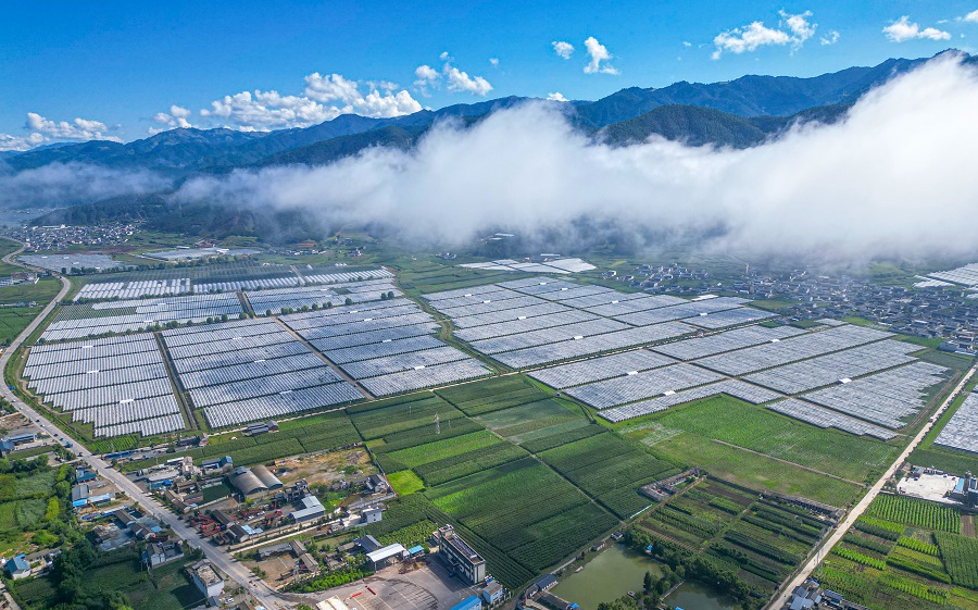 航拍兰坪县乡村振兴现代农业产业园种植基地(7月29日摄)。
