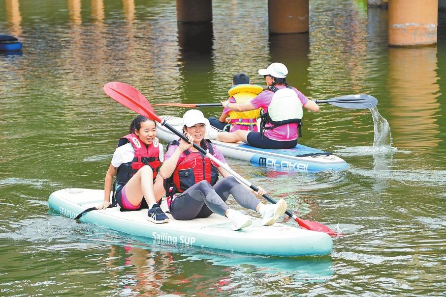 昆明市民体验桨板运动。记者 娄莹 摄
