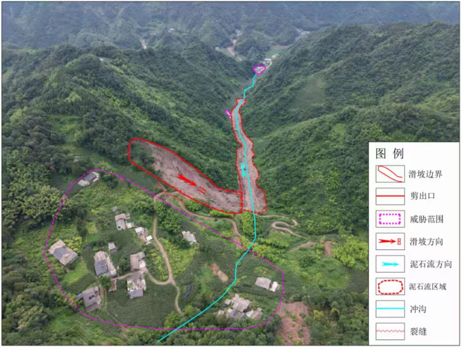 收到险情报告后,县、乡人民政府高度重视,村、组工作人员立即赶赴现场进行管控,县自然资源局和驻县技术指导站的工作人员随即开展了调查核实。7月26日18时15分,受持续强降雨影响,单家坪村民小组的一座山头轰然垮塌,裹挟着泥沙向下猛冲。因预警及时、转移果断,科学避免了下游1户4人因灾伤亡。