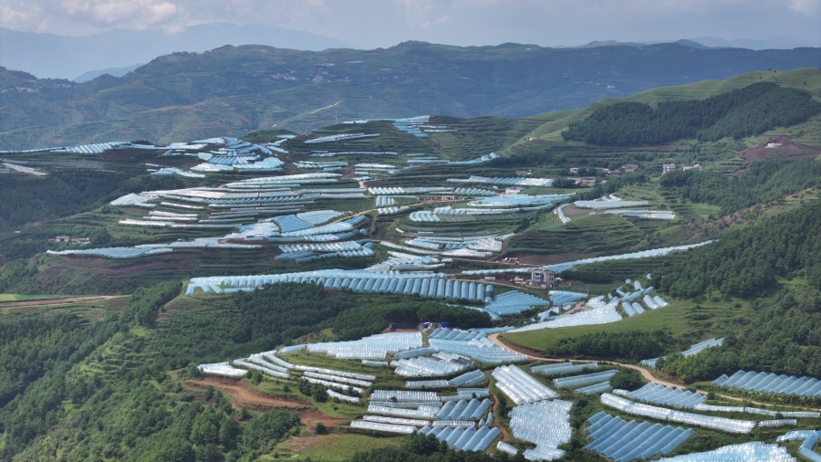 航拍巧家县炉房乡草莓种植产业基础设施补短板项目(8月14日摄)。李仁念 摄