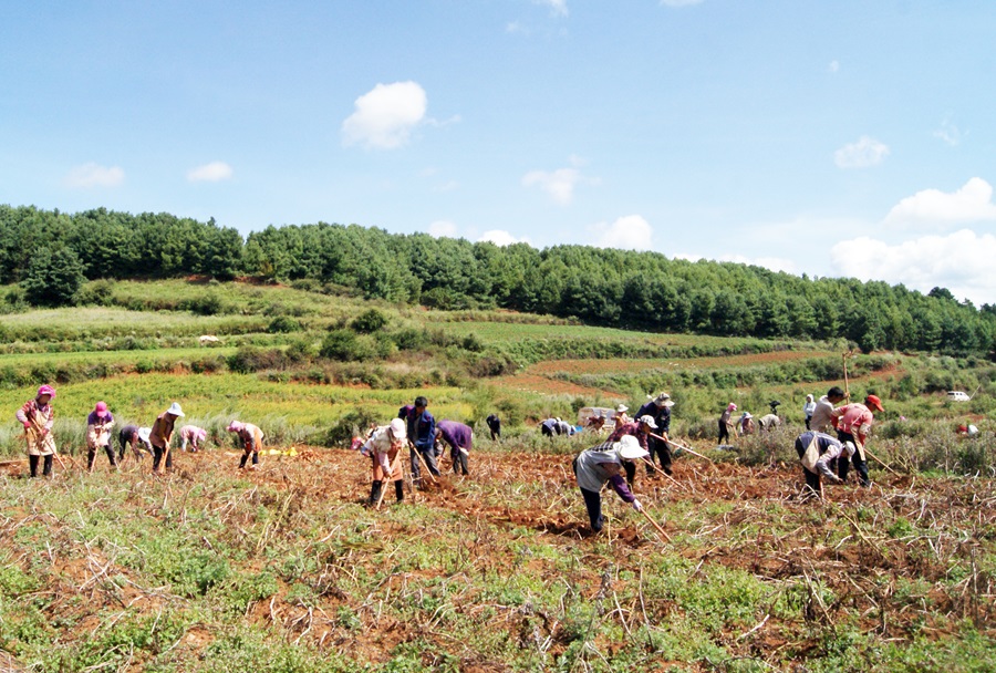村民正采挖马铃薯(9月2日摄)。周明瑾 摄