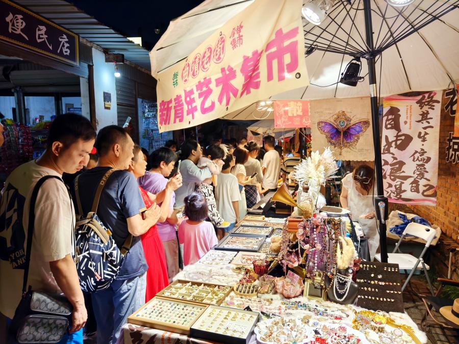 今夏,“曲靖老街·新青年艺术集市”吸引超过60万人次涌入——从手作饰品、潮玩艺术到轻食佳酿,从传统糖画、手冲咖啡到怀旧老物件,从古法拓印、手作陶艺到非遗剪纸,“艺术+文博+美食”的多维模式,进一步激活了老城消费。这里,已不再是“被遗忘的角落”,而是点亮曲靖夜生活的“流量密码”。