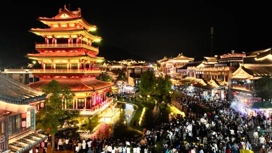 曲靖外滩是曲靖夜经济的重要地标。这里汇聚时尚购物、地道小吃、酒吧娱乐,一站式满足游客对“摩登”和“烟火气”的双重期待。南中爨城则以文化为魂,借助现代光影技术,打造出“咏爨”水幕激光秀,让千年爨文化“活”在当下。此外,打铁花、篝火晚会、民俗市集等特色活动,吸引大批市民游客前来纳凉体验。