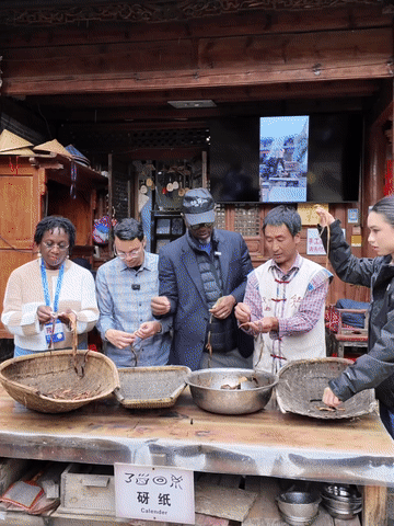 9月8日至9日,2025全球南方媒体智库高端论坛部分嘉宾参访丽江。几位外宾在青石巷陌间体验古老的东巴纸制作,亲手触摸跨越千年的技艺,感受纳西族文化的独特魅力。