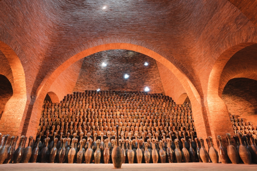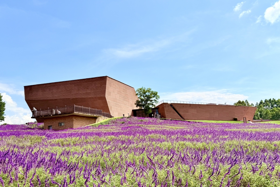 红砖建筑是东风韵国际康养旅游度假区的一大特色。整个建筑群没有使用一根钢筋,仅用本地红砖建起了一座座城堡,别具匠心。牛哆啰、半朵云、万花筒艺术馆等代表性建筑,每一幢都拥有独特造型和生命力。其中,万花筒艺术馆外形如一堆红酒瓶,随光影变化,内部空间更随着阳光照射角度呈现出不同光影之美。漫步在东风韵国际康养旅游度假区内,采风团能感受到建筑与自然完美融合的诗意场景,每一处细节都散发出生活与艺术交织的韵律。