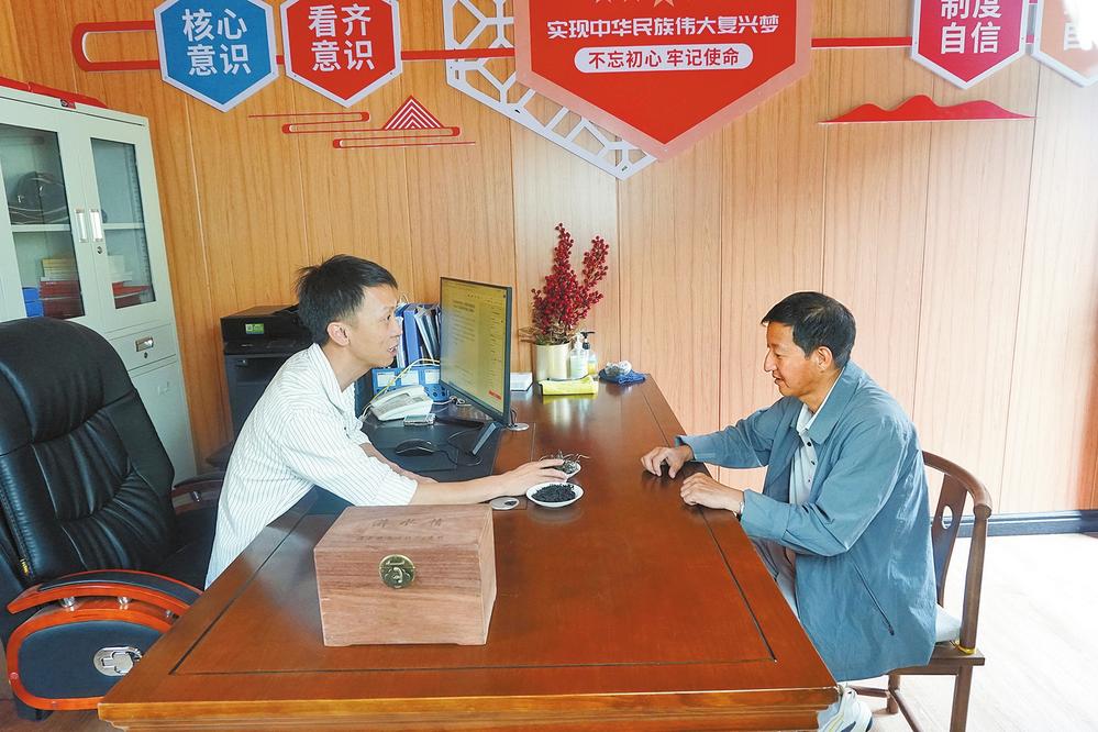 在保山市昌宁县漭水镇,古茶树专业代表工作站坐落于茶农茶商往来频繁的主干道旁。墙上张贴的二维码方便茶农“一键反馈”诉求。推门而入,茶香袅袅中,茶农们常以“一盏茶”的功夫,向驻站代表反馈产业发展问题。