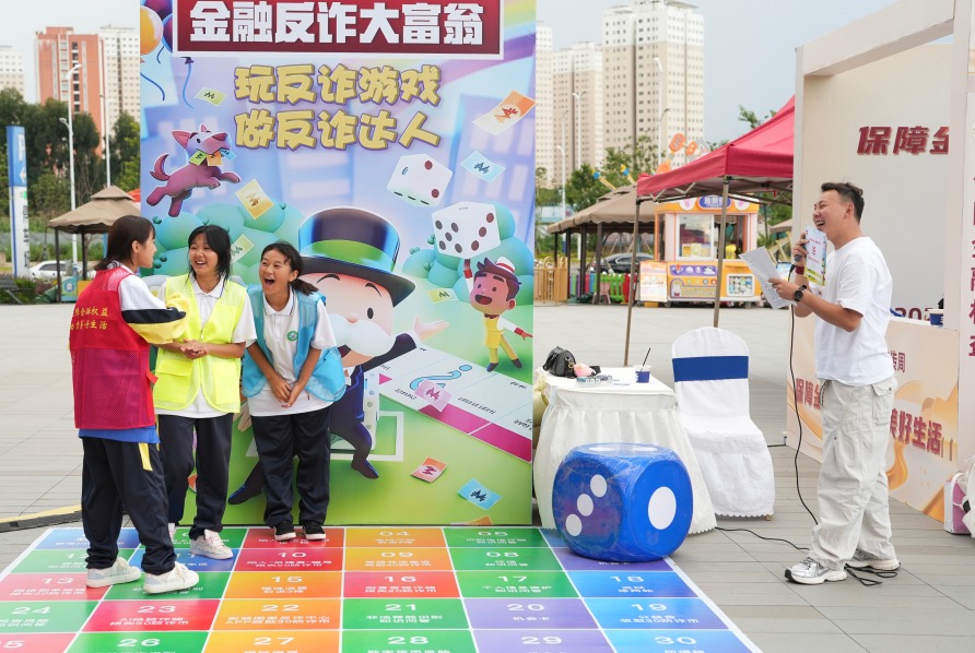 群众通过互动游戏学习金融知识(9月19日摄)。