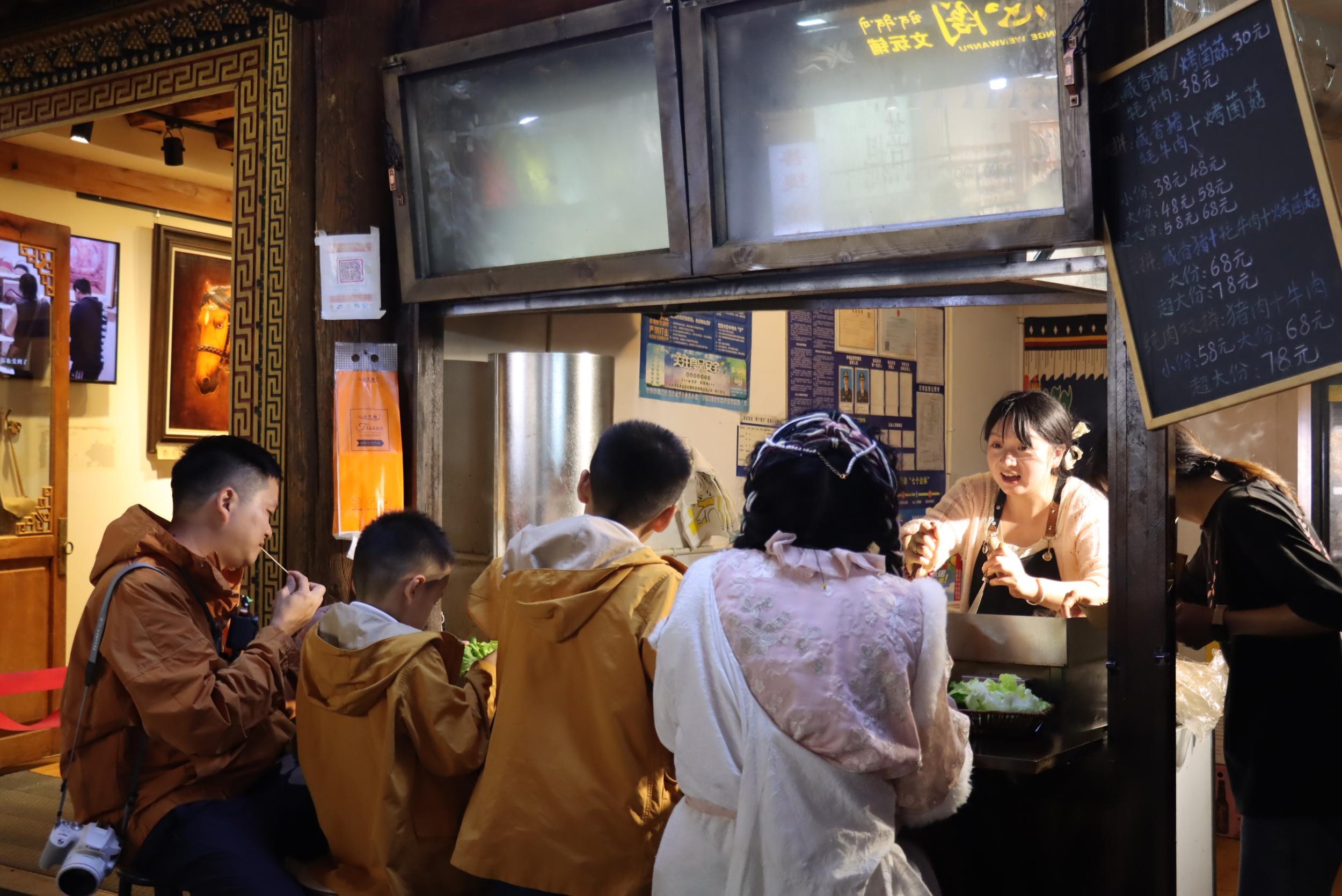摊位前,游客大快朵颐