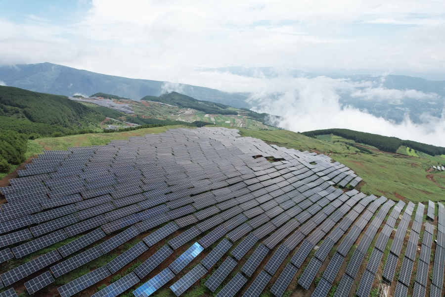 光伏板整齐铺设在山间(资料图)。