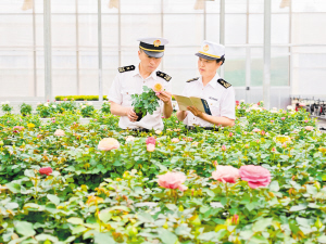 海关关员在昆明晋宁鲜花种植基地对出口玫瑰开展日常监管。戴玮琪 摄