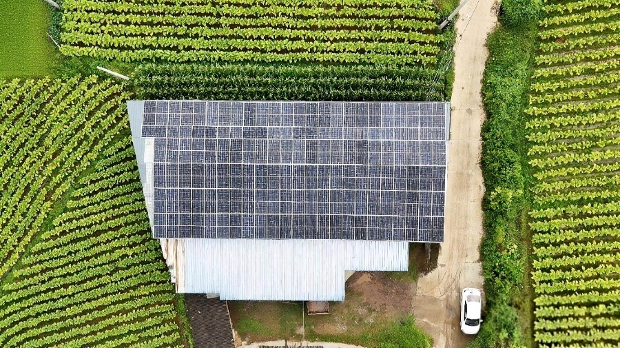 烤房上的光伏板(资料图)。谭希晶 摄
