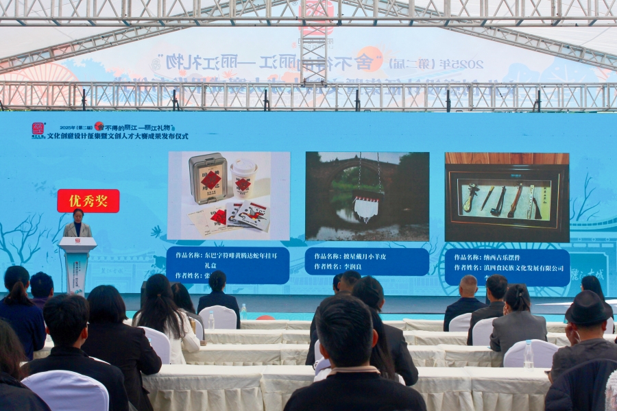 2025年(第二届)“舍不得的丽江——丽江礼物”文化创意设计征集暨文创人才大赛成果发布仪式现场(9月28日摄)。