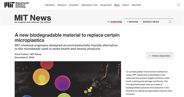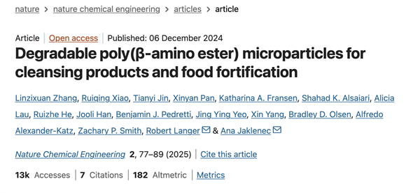 在MIT的五年博士生涯中,张林子铉聚焦于一个核心问题:如何通过新型材料的研究与应用,将实验室创新转化为能够真正服务社会的解决方案。她与团队开发了一类可降解的聚合物微粒——聚(β-氨基酯)(PAE)。这类材料能实现对多种微量营养素(包括维生素A、维生素D、维生素E、维生素C、锌和铁)的稳定化与控释,使其在烹饪和储存中保持活性,并能在人体内可控释放,从而提升吸收效果。该技术为应对“隐性饥饿”(hiddenhunger)——即热量摄入充足但缺乏必需微量营养素所造成的营养不良问题提供了新的可能。相关研究发表于国际顶级期刊《NatureChemicalEngineering》。