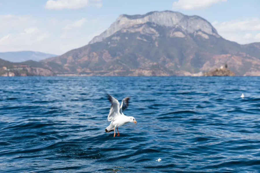 泸沽湖上鸟类翩跹(资料图)。马登科 摄