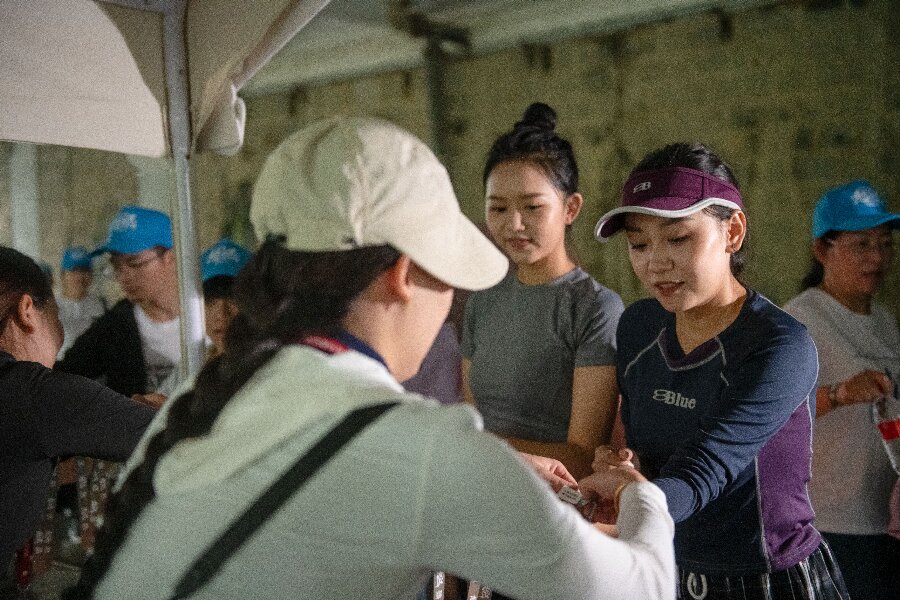 参与者正在领取手环(10月1日摄)。