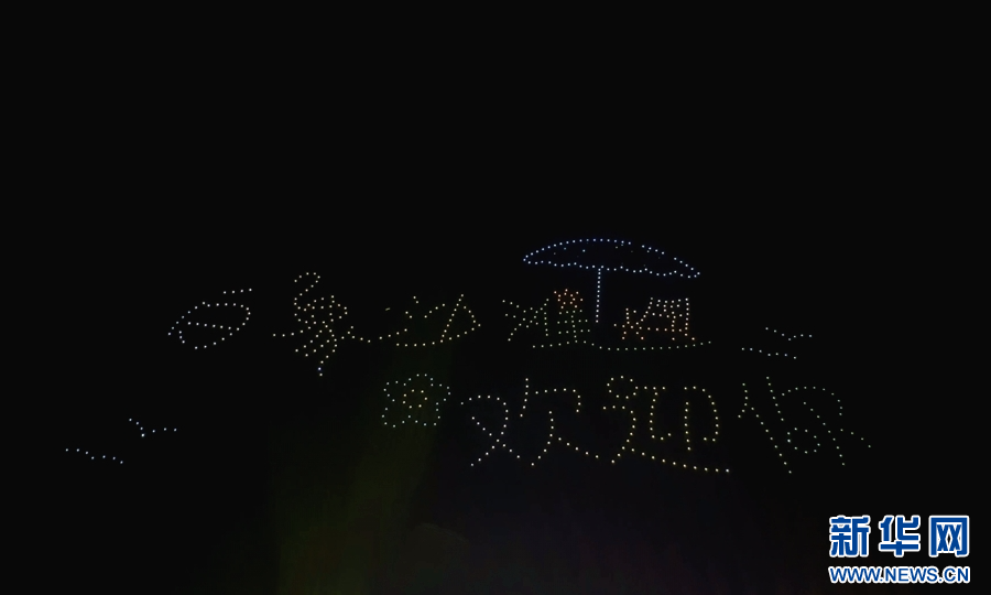 “澜·湄嘉年华”现场的无人机表演(10月3日摄)。新华网发(柴静 摄)pagebreak