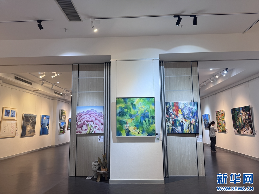 游客正在参观第八届西双版纳国际美术展(10月3日摄)。新华网发(柴静 摄)