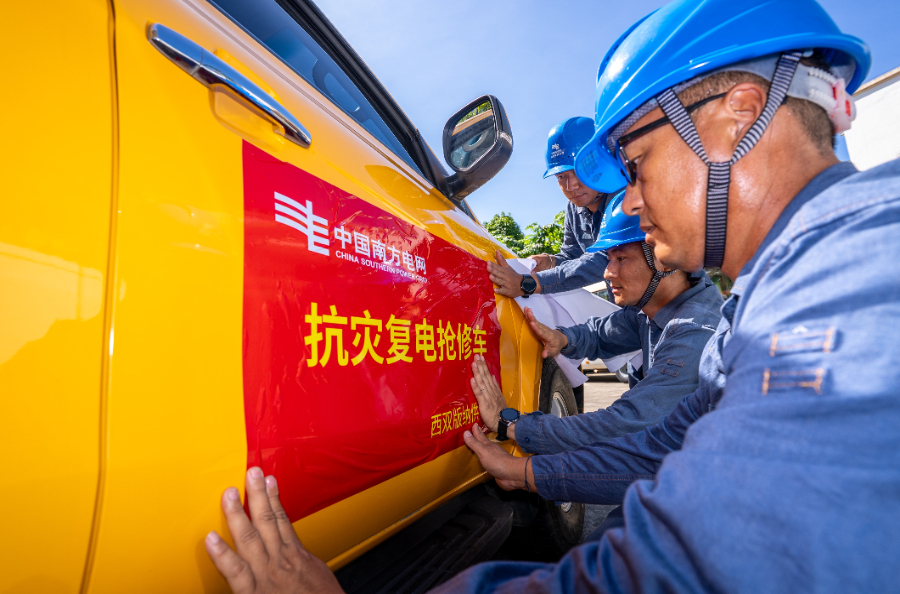 西双版纳供电局抢修人员驰援广东湛江抗风保电一线(10月6日摄)。任军 摄