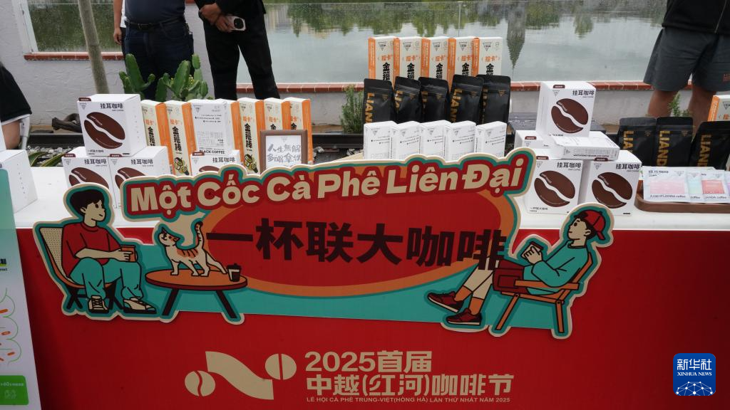 2025年首届中越(红河)咖啡节开幕式活动现场展出“一杯联大咖啡”和“汉方咖啡”等品牌咖啡。新华网发(蒙自市委宣传部供图)