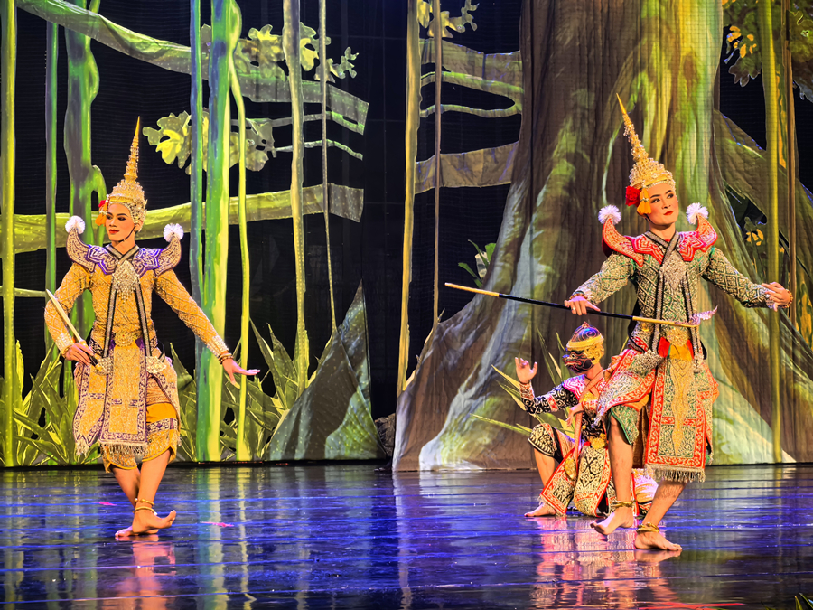 本届艺术节以创新形式打造了多元文化活动。从曼听御花园的泰国文艺精品展演,到白象沙滩的澜·湄嘉年华,艺术的桥梁连接起各国人民。10月2日,泰国艺术家们献上了人类非物质文化遗产代表作名录孔剧的《拉玛坚》选段。他们身着华服,以精湛演技和优美舞姿,在融合现代灯光与多媒体技术的舞台上,生动演绎经典故事,“优秀文艺剧目+现代潮流文化”的创新表达,辅以极简剧情解说,为线上线下观众带来一场深入浅出的文化盛宴。