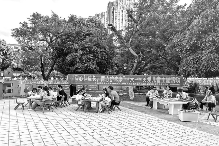 富宁县幸福社区双拥公园开展“六一”关爱儿童流动服务。 黄彩莲 摄