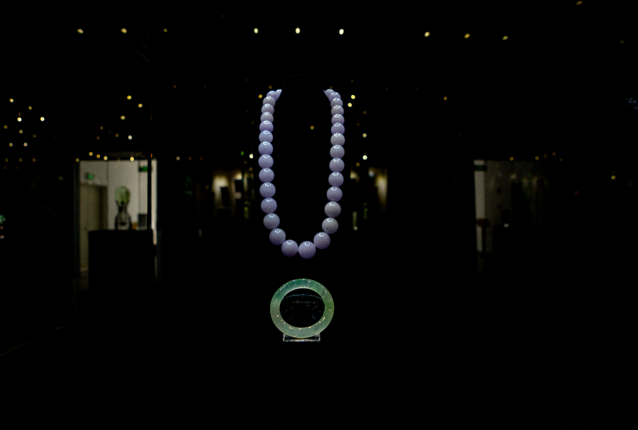 腾冲翡翠博物馆展出的翡翠(9月16日摄)。
