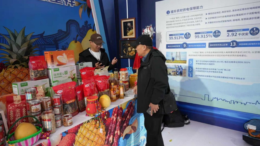 在活动现场,南方电网公司展台展销的农产品吸引了不少顾客驻足选购(10月16日摄)。