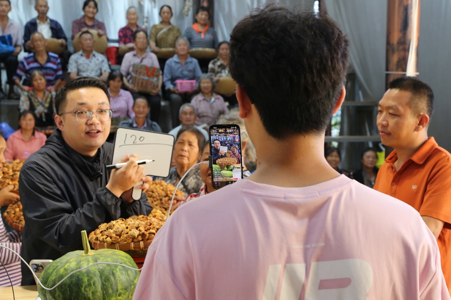 直播农特产品直播(10月17日摄)。
