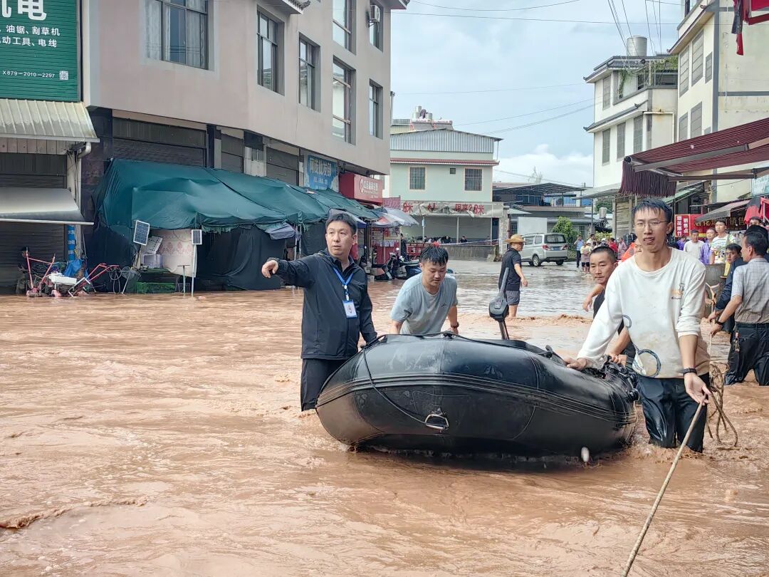 抢险现场,党员干部始终冲锋在前。针对勐嘎河沿岸被淹路段,联合派出所、交警队封闭危险路段,引导车辆绕行;使用民用皮划艇2个,应急救援艇1个,装载机12台次,挖掘机5台,消防车1辆,救灾帐篷10顶,抽水机6台进行抢险救灾工作,并对受灾区域开展排查救援,组织力量对677名群众进行转移避险;针对5个勐嘎河沿河重点风险村组,镇党政班子成员带领民兵、村“两委”班子成员、村民小组长等30余人通过入户走访、电话通知及时进行风险提醒及转移劝离,有序疏散安置群众至临时避险点。