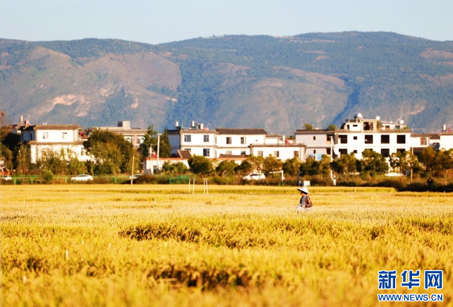 大理古生村金黄的稻田(10月26日摄)。新华网 赵普凡 摄