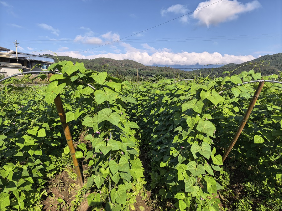 烟后四季豆正开花结果(10月23日摄)。董发云 摄
