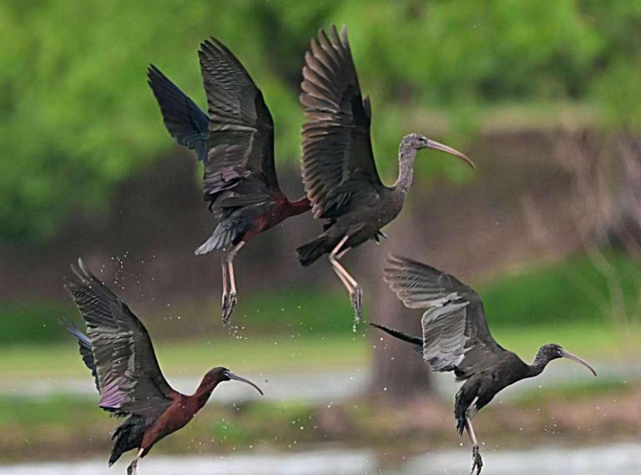 剑湖湿地上飞翔的彩鹮 通讯员 杨杰斌 摄