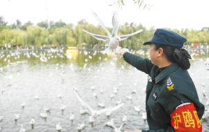翠湖公园组建护鸥队保护红嘴鸥。 记者赵伟摄