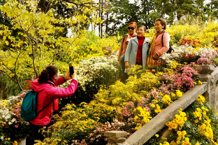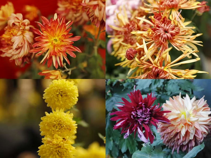 近日,在位于云南省昆明市的大观公园与昙华寺内,各色菊花竞相绽放,为昆明增添了一抹温暖的色彩。