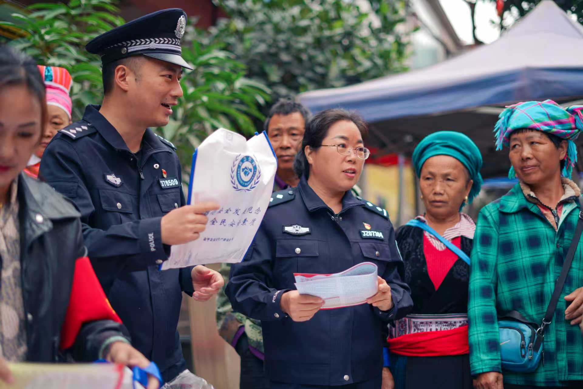 勐拉司法所带队到翁当村赶街天开展普法宣传,发放宣传物品(5月12日摄)。勐拉司法所供图