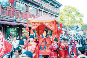 “及第”“高中”……在古镇广场的主舞台上,一场名为“荣归故里”的情景剧精彩上演。几名身着状元、榜眼、探花服饰的青年,在众人的簇拥下还原了古代学子金榜题名、荣归桑梓的喜庆场景。这一极具寓意的环节,不仅是对古代科举文化的生动再现,更寄托了对当代学子学业有成的美好祝福。此外,活动还设置了沉浸式游园环节,投壶、套圈、花神签等传统游艺项目吸引了大量游客参与。