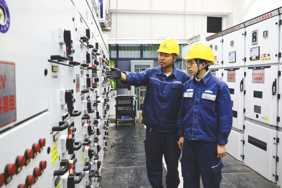 红塔供电局工作人员对配电室进行日常巡视。(11月26日摄)。代薇 摄