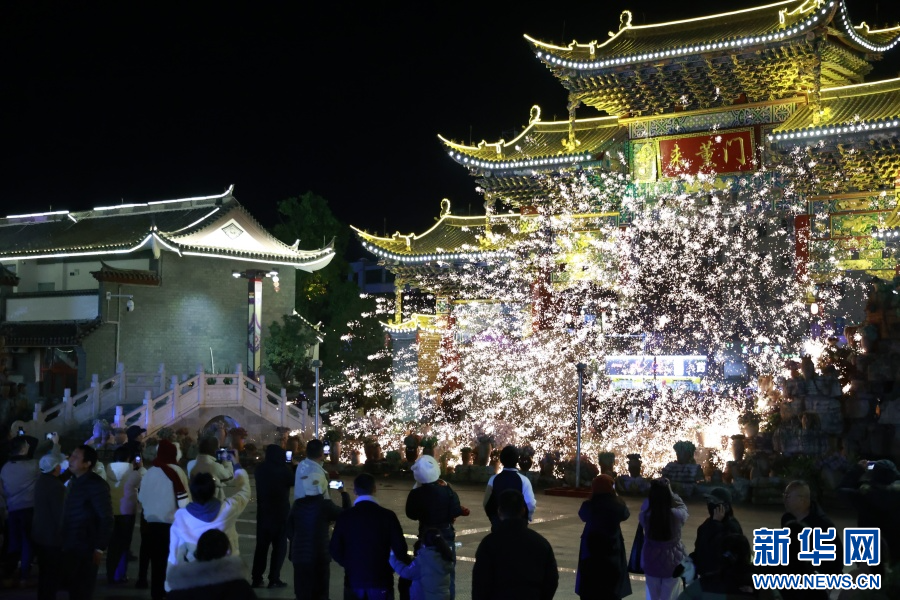 嶍峨古镇上的焰火表演(11月28日摄)。新华网发(杨桢宇 摄)