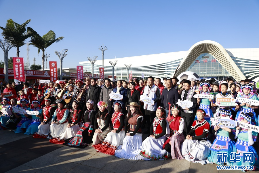 怒江球迷团在玉溪高铁站合影(11月29日摄)。新华网发(杨桢宇 摄)