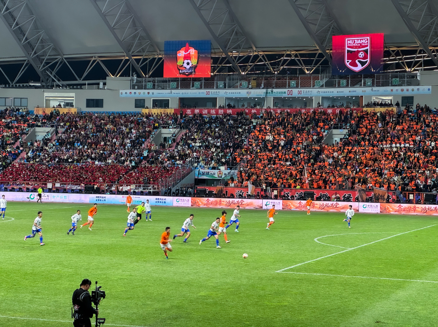 “开场28分钟,玉溪队一记门前扫射破门,滇超揭幕战首个进球诞生了!我们现场都沸腾了!”看台前排的球迷林希霖用手机录下进球精彩瞬间和满场欢呼的视频后,马上发了朋友圈,评论区很快被“真燃”“板扎”刷屏。29日晚的2025/2026赛季云南省城市足球联赛(简称 “滇超联赛”)揭幕战现场,场内玉溪队主场迎战怒江队热战正酣,场外球迷们也纷纷直播、分享赛况,拼起了网速。