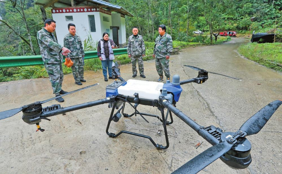 操作员操控无人机运输草果。记者 杨峥 陈飞 摄