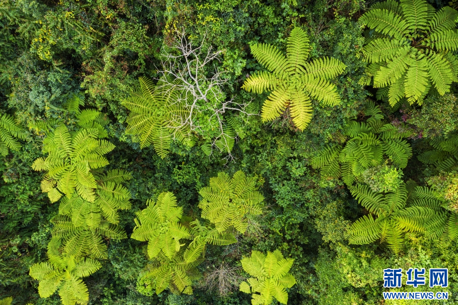 航拍镜头下的桫椤群(11月29日摄)。 新华网发(尹磊 摄)