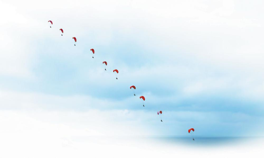 抚仙湖上空的滑翔伞表演。 通讯员 董乙泽 摄