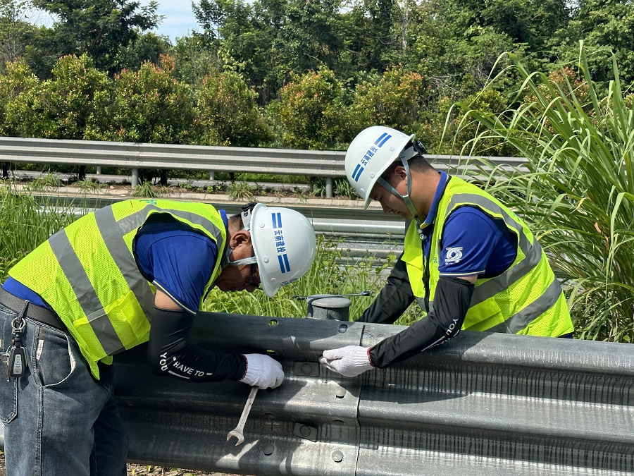 养护队员修复波形护栏(资料图)。