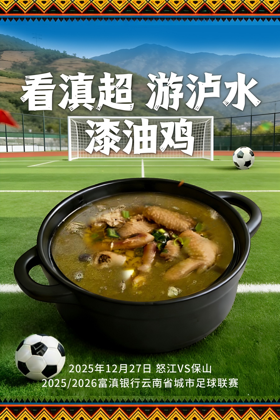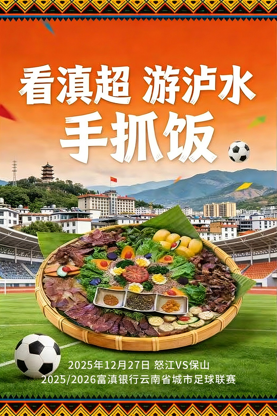 2025/2026富滇银行云南省城市足球联赛怒江主场赛事临近,泸水以“体育+文旅”为纽带,端出地道民族美食盛宴,让球迷在观赛之余尽享舌尖狂欢。(完)