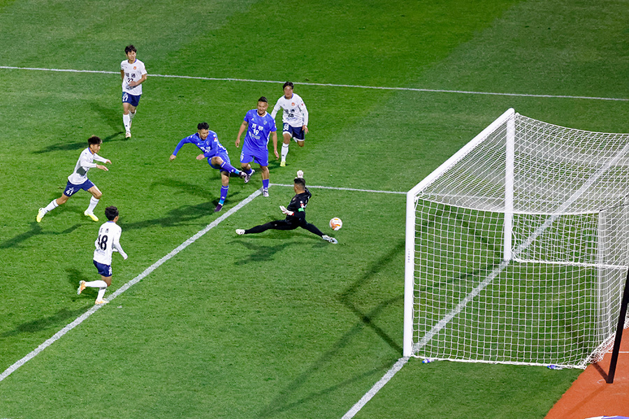 昆明队进球瞬间(12月27日摄)。新华网发(杨桢宇 摄)