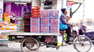 在昆明市金马正昌果品批发市场,运输水果的车辆络绎不绝。