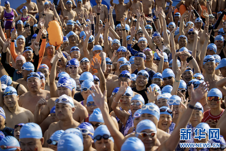 选手们在金沙江中游泳。张万高 摄