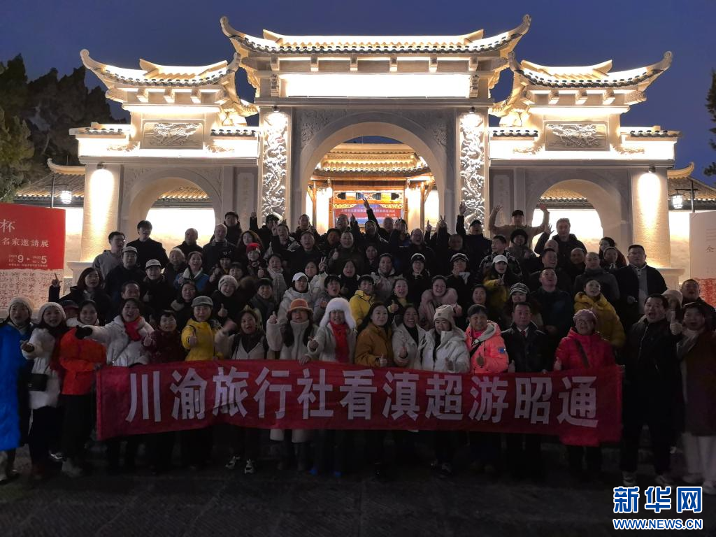 2026年1月2日,川渝旅行社代表“看滇超 游昭通”活动走进昭通古城游览并合影留念。(莫娟 摄)