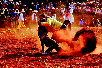国家级非遗代表性项目彝族摔跤。云南石林县委宣传部提供